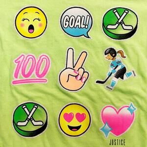Justice Active Neon Green Emoji Long Sleeve T-Shirt Girls Size 12