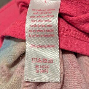Cross back with teardrop opening. Tie dye design in bright colors. Still in good, used condition.