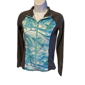 Justice Active gray blue and green zip jacket with thumb holes size 10