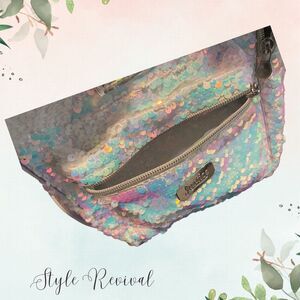 Justice “B” Initial Flip Iridescent Sequin Pom Pom Mini Backpack Bag with 2 pockets & Adjustable Straps