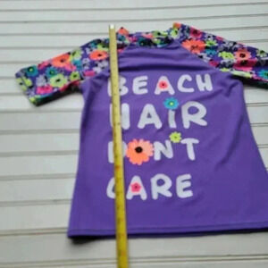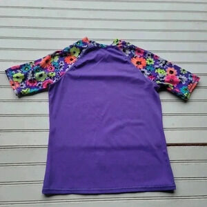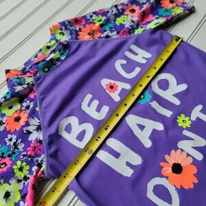 Justice Beach Hair Dont Care Purple Girls Surf Rashguard Swim Shirt Floral Sz 14