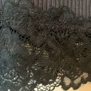 Justice Black Ribbed Tee with Lace Hem