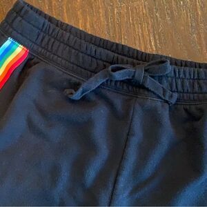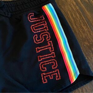 Justice Black with mutlicolor stripes on each side Size 20 Plus Elastic waist with adjustable tie Good pre-worn condition