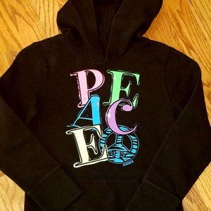 Justice Black hoodie w/bright Peace size 7