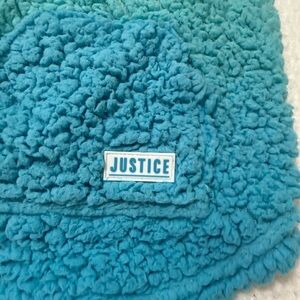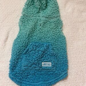 Soft sherpa hoodie with ombre design. Features a cozy front pocket. Perfect for comfort and style.