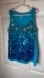 Justice Blue Sparkle Ombré Sequin Tank Top turquoise Blue Girls 12. Gradient of blue hues, transitioning from light to dark with a shimmering sequin effect. Classic sleeveless design and rounded neckline. Perfect for adding a touch of glam. Fabric has stretch. Gently used Good Preowned Condition. Slight pilling. No holes or stains.