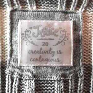 Justice Brand Grey and White Stripe Cable Knit Sweater with Hood and Front Pocket -Size 20. Pullover style. Never worn. Excellent condition.