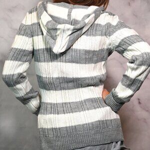 Justice Brand Grey and White Stripe Cable Knit Sweater with Hood & Front Pocket
