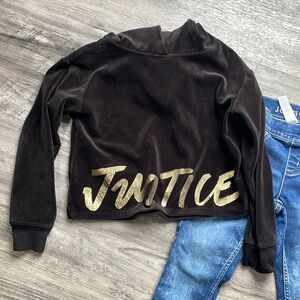 Girls Justice velour hoodie and size 10 slim jeans. Excellent condition.