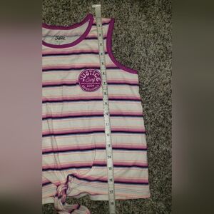 Brighten up your child's wardrobe with this Justice Girls' Striped Tank Top. Featuring vibrant pink and purple stripes, this top is perfect for casual outings. The soft fabric ensures comfort all day long.
