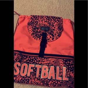 A cute Justice drawstring bag with “softball” written across the bottom!✨
