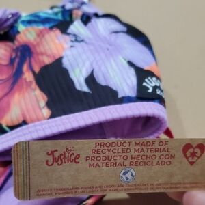 Vibrant floral bikini set. Features tropical print. Comfortable fit. Perfect for swimming.
