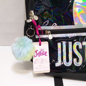 Justice Girls 17" Laptop Backpack w/ Pom Pom Dangle Backpack for Girls & Teens