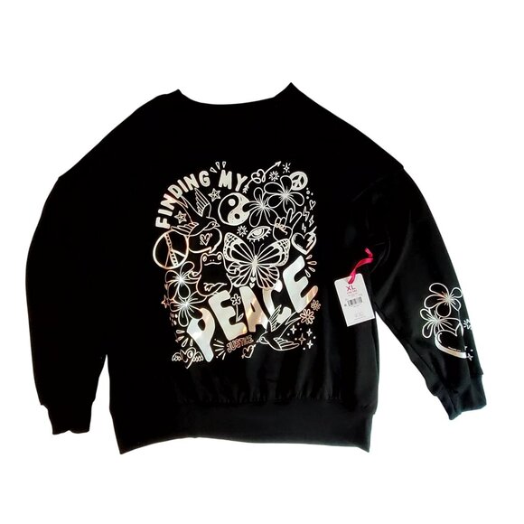 Justice Girls Black "Finding My Peace" Graphic crewneck sweatshirtTop XL 16/18