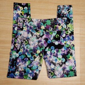 Justice girl’s black purple abstract print leggings 12. Gently used condition. Measurements are: 12” waist, 31” outseam, 24” inseam. **measured flat**