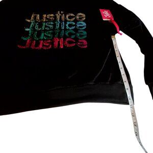 Justice Girls Black Velour Crewneck Sweatshirt Multicolor Sequin Logo XL 16/18