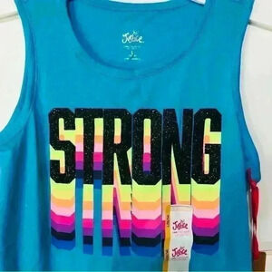 New with tags Justice Girls Bundle Blue Strong and Striped Tank Top Black Legging size L 12-14.