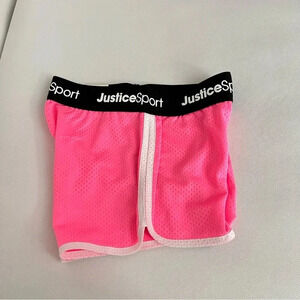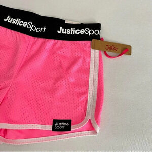 New, Justice Girls Core Solid Mesh Shorts Flash Pink/Black Elastic Waist Size Medium (10)