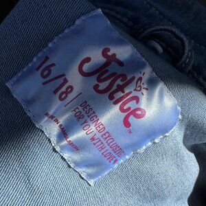 Justice Girls Denim Jacket Size 16/18 Light Blue Stretchy Frayed Hem Button Fron