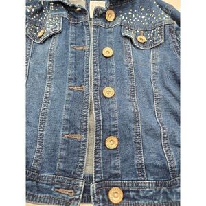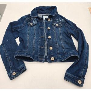 Justice Girls Denim Jacket With Rhinestone Studded Shoulders & Button Front Clos