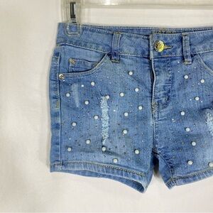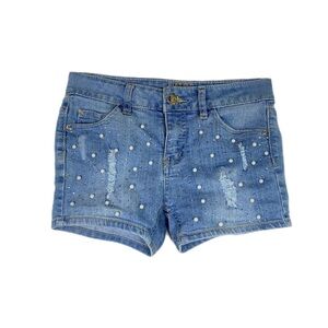 Justice Girl’s Distressed Denim Pearls & Rhinestones Jean Shorts