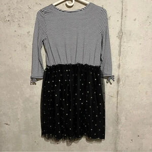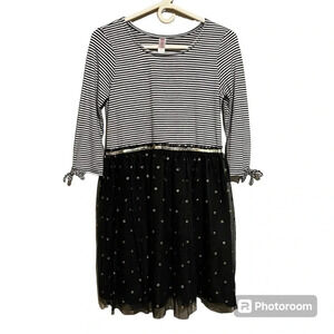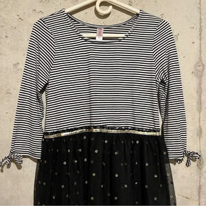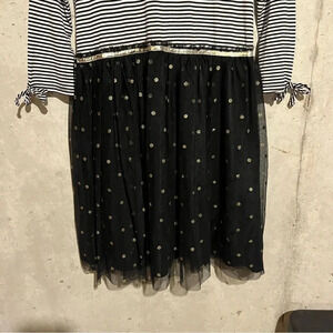 Justice Girls Dress Sz 18 Black White Stripes Tulle Gold Polka Dots Rocker Chic