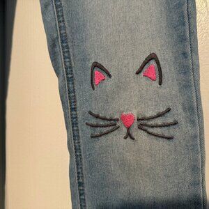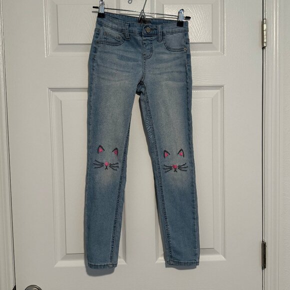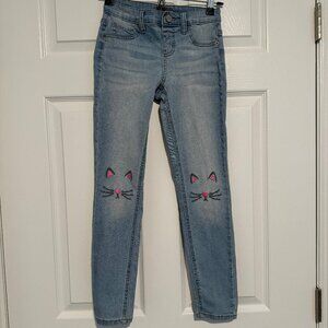 Justice Girls Embroidered Kitty Cat Light Wash Pull On Jeggings Size 10 EUC