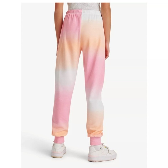 These stylish kids joggers feature a vibrant pink and orange tie-dye design. Perfect for casual wear, they offer comfort and a trendy look.