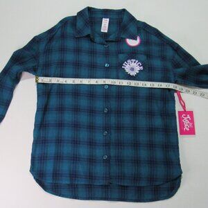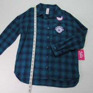 Justice Girls Graphic Flannel Plaid Button-Down Shirt Top, Size M (10)