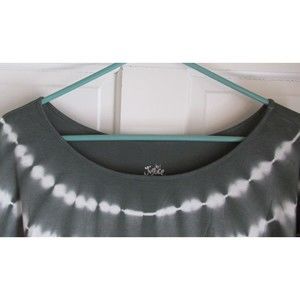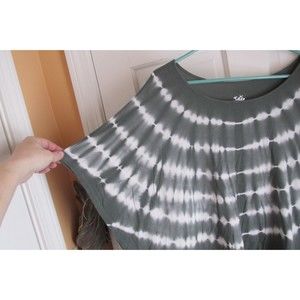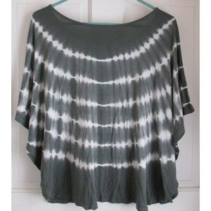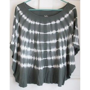 Please refer to measurements for fit since every garment fits differently. All measurements are approximate (garment lying flat): Arm pit to Arm pit: 30" Neck to end of sleeve: 12" Neck to hem of garment: 22 1/2" Condition: Pre-owned Size: 18/20 Juniors Color: Green & White Tie Dye Features: Pullover - Flutter Short Sleeve - Batwing