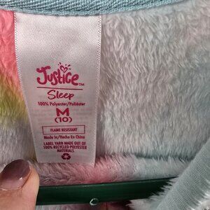 This charming Justice pajamas, crafted for girls, features a delightful tie-dye design that brings a splash of color to bedtime attire. Made from recycled polyester, it offers a soft and cozy feel, perfect for a restful night's sleep. It is flame-resistant, ensuring safety and comfort, and is machine washable, making it easy to care for.