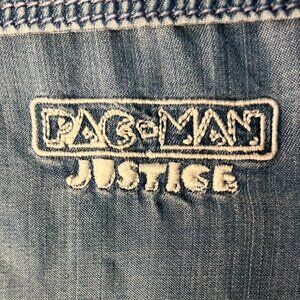 Justice Girls PAC-MAN Chambray Denim w Embroidery Short-Sleeve Button-Up SZ XL