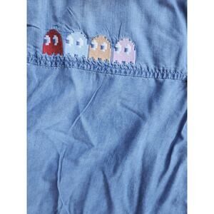 Justice Girls Pac Man Denim Top Juniors Sz M Blue Snap Short Sleeve Ghost Gang