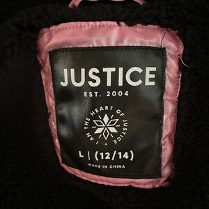 Justice Girls Pink Black Puffer Coat Size Large 12/14