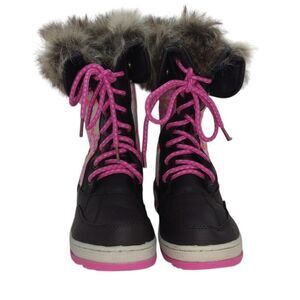 Justice Girls Pre-owned Pink/Brown Faux Fur Lined Winter Boots - sz. 2