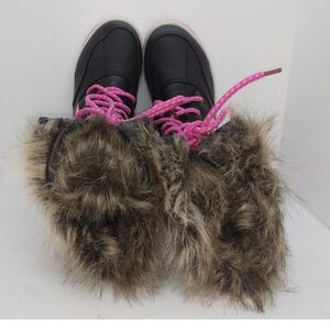 Justice Girls Pre-owned Pink/Brown Faux Fur Lined Winter Boots