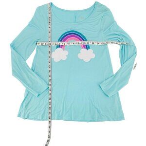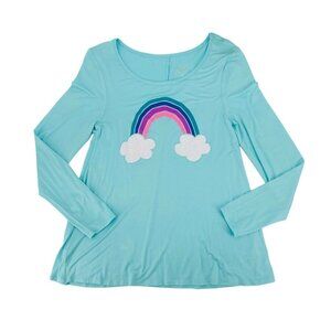 Justice Girls Rainbow Graphic Long Sleeve Tee Size XL 14 T-Shirt Blue Tunic Top