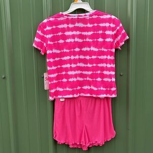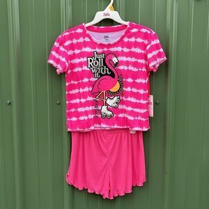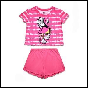 Justice Girls Shorts & T-Shirt Tie Dye Flamingo Pajama Set Size L 12/14