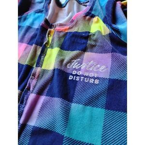 The Justice Girls Size Large Sleepwear/Pajamas are a cozy and comfortable option for young girls. Made of 100% polyester with a blended fabric, these pajamas feature a check pattern in a lovely blue color. With long sleeves, a zip closure, and machine washable care, these one-piece outfits are perfect for the winter, fall, and spring seasons. Featuring the Justice brand, these sleepwear pieces are sure to keep girls warm and stylish while they dream.