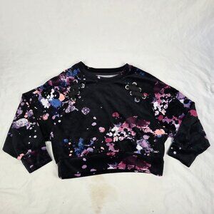 Justice Girl's Size M Velour Lace-Up Paint Splatter Sweatshirt