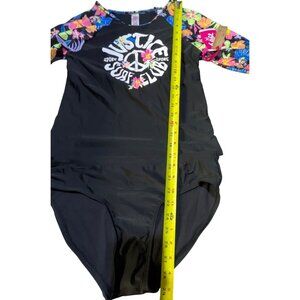 Justice Girls Size XL 16/18 2 piece Rashguard Long Sleeve Floral Sleeves Black M