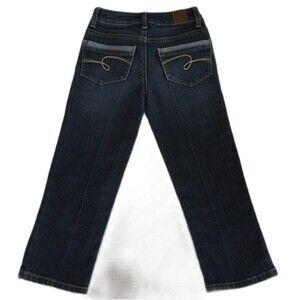 Justice Girls Simply Low Straight Leg Dark Wash Blue Jeans. They're in excellent condition and still have a lot of life left in them. Please look at and zoom in on the pics.