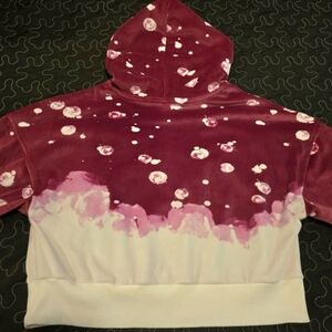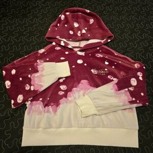This soft and stylish Justice hoodie in pink and white velour is perfect for back-to-school and fall fashion. With its cozy feel and cute design, it's ideal for playtime or staying warm on chilly days.