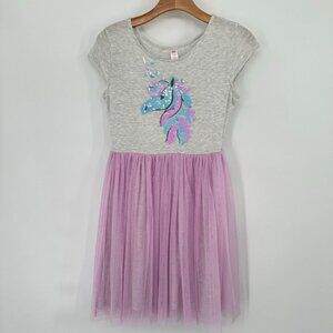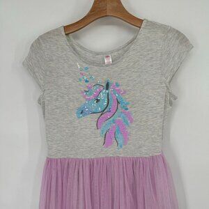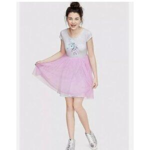Justice Girls' Unicorn Sequin Dress Grey & Pink Short Sleeve Size 14 -16