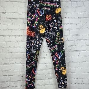 Justice Girls 12 Black Neon Lights Christmas Legging Holiday Print Yoga Pant