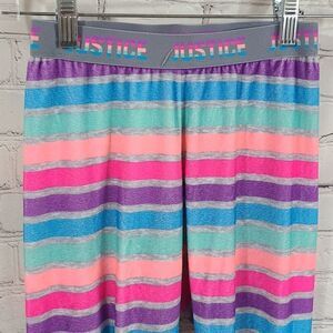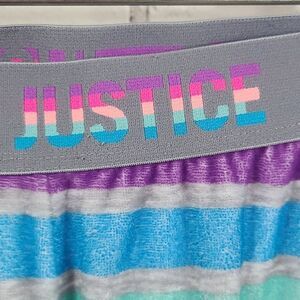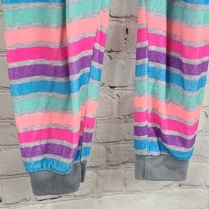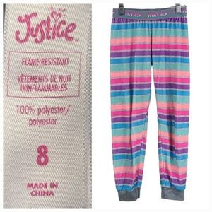 Justice Girls 8 Plush Gray Pajama Jogger Pants Pink Purple Blue Stipes Colorful