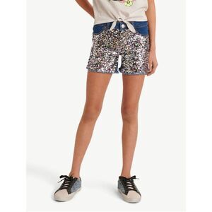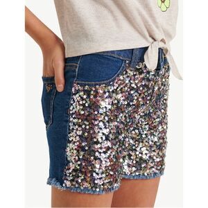 Justice Girl's Highrise Midi Denim Sequin Shorts Size 16