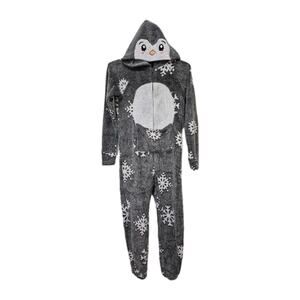 Justice Gray White Snowflake Penguin Hooded Fleece Jammies Girls Size 8