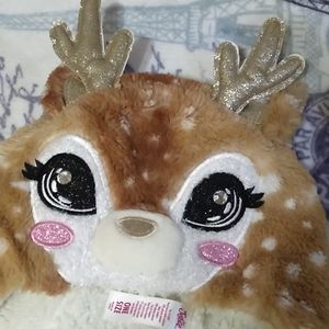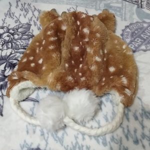 Adorable rain deer hat with ear cover and ties. Never worn. Comes with matching gloves. Smoke/COVID 19 free home.