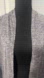 Chic and comfortable open-front cardigan. Soft heather gray knit with lace trim. Perfect for layering.